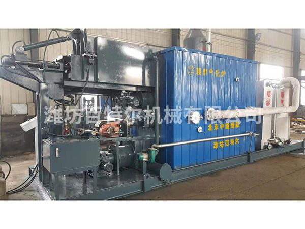 3、低成本實現(xiàn)環(huán)境效益,煙氣二次氧化,有效控制污染物的排放。將燃氣燃燒后的煙氣二次引回加熱室的煙氣氧化箱凈化,運用煙氣氧化箱溫度、時間、渦流方式控制技術(shù),使煙氣中存留的微量有害物質(zhì)二次被氧化,抑制二惡英類污染物二次合成等技術(shù)關(guān)鍵。在不增加尾氣處理設(shè)備的情況下,二惡英類污染物由之前的(第一代技術(shù)產(chǎn)品)0.087ngTEQ/m3降至0.013ngTEQ/m3。同時該設(shè)備的廢氣排放量小,是普通焚燒廢氣排放量的30%,有利于對大氣污染及霧霾的控制。有機物減量率達到93%-95%。
